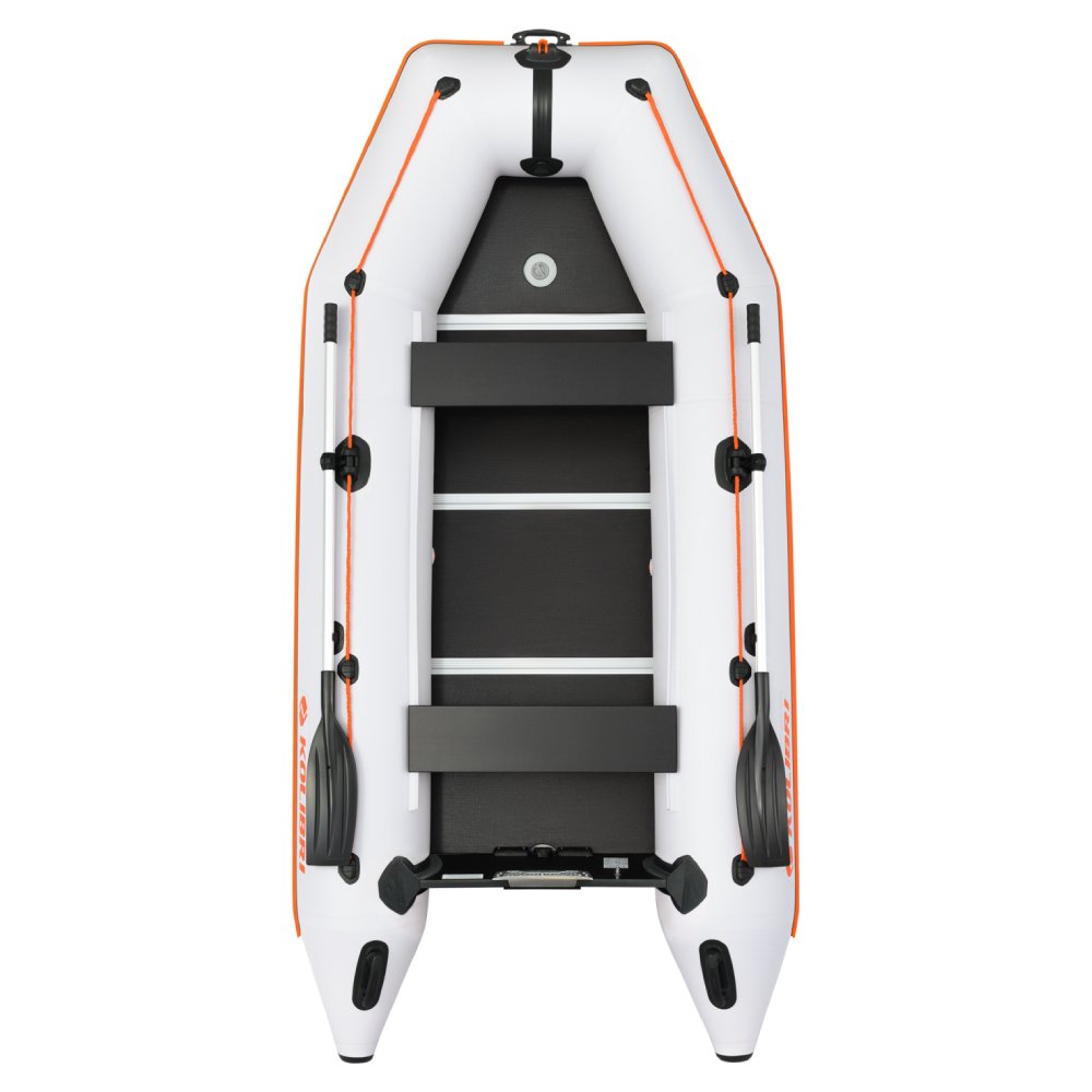 Kolibri KM-330D kilinė valtis komplektuojama su fanera arba tvirta ir patikima aliuminine grindų lenta. Jame įrengtos stygos, neleidžiančios dugnui „žaisti” greitai plaukiant bangomis. Aliuminio grindų danga suteikia valčiai standumo ir padaro ją beveik monolitinę, todėl ji sklandžiai plaukia vandeniu, yra lengvai manevringa ir pasižymi puikiomis valdymo savybėmis.